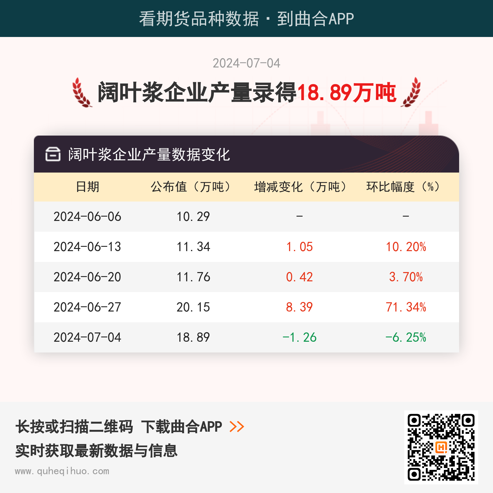 7月4日阔叶浆企业产量为18.89万吨