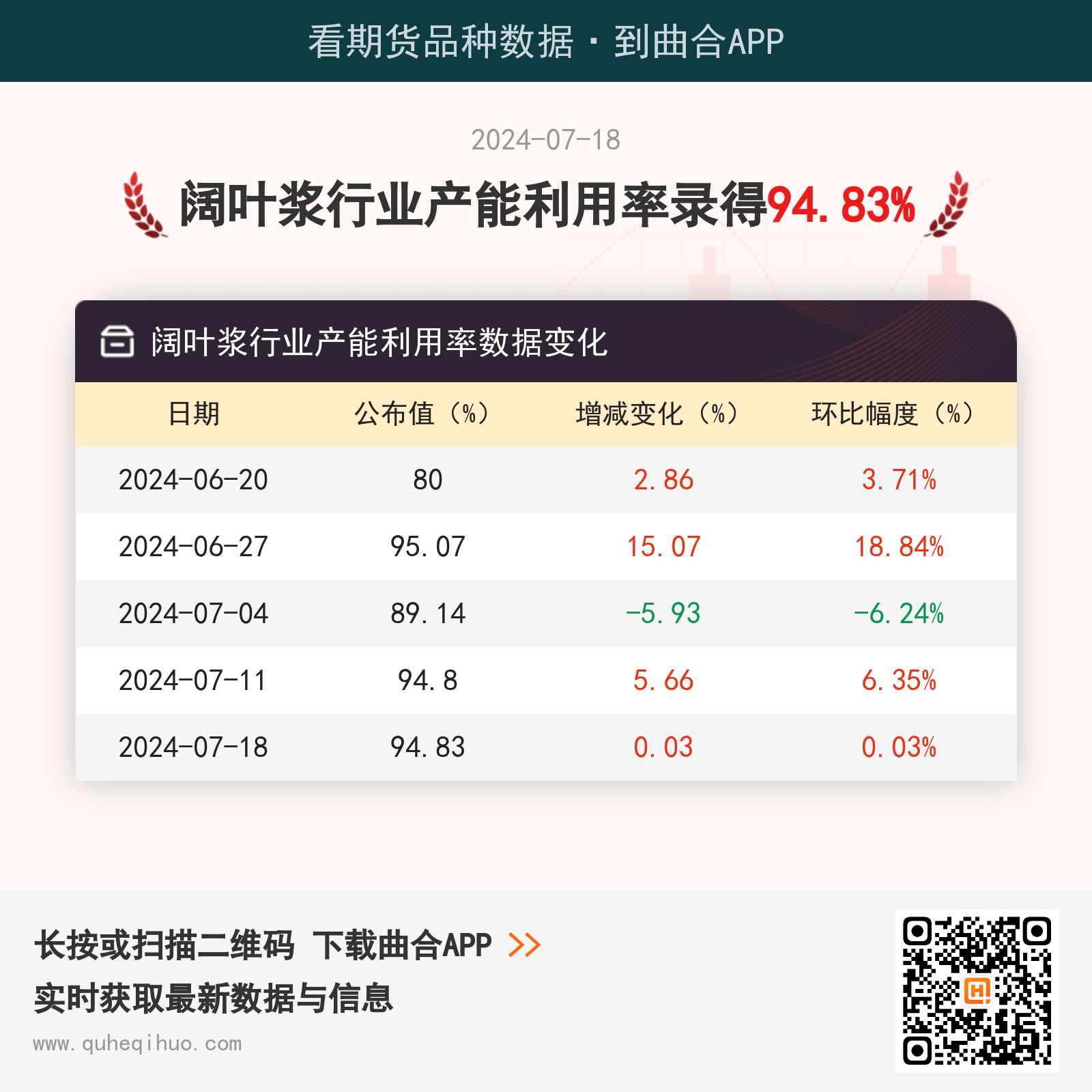 7月18日阔叶浆行业产能利用率为94.83%