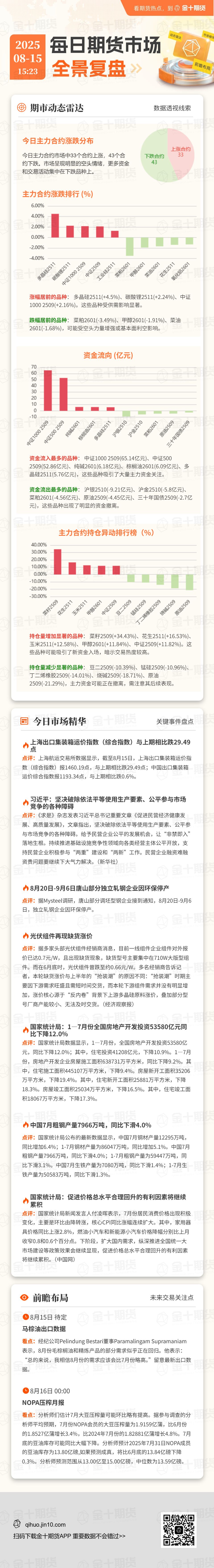 每日期货全景复盘8.15:供给侧改革预期维持,但多晶硅价格短期仍预计维持高位整理