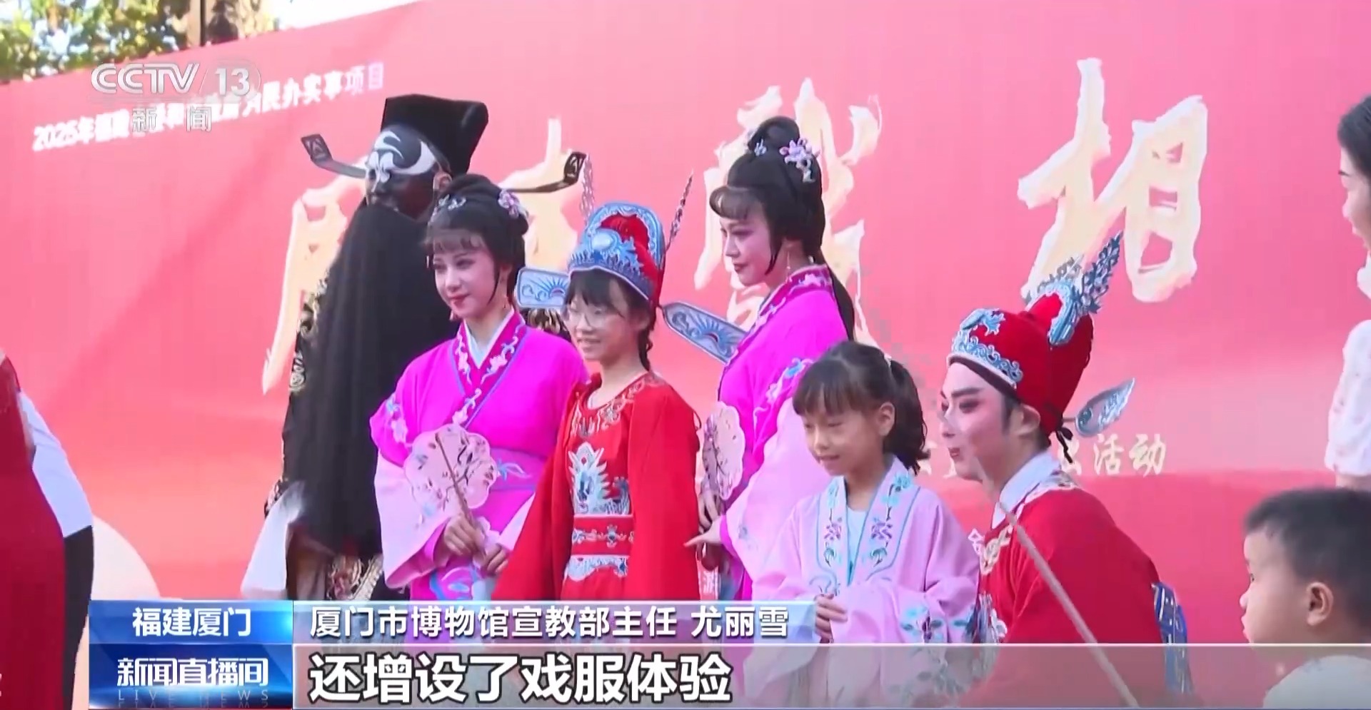 厦门市博物馆宣教部主任 尤丽雪:“周末戏相逢”非遗戏曲演出不仅可以欣赏到经典折子戏,还增设了戏服体验、与演员角色合影等互动环节,打造室内室外沉浸式文化体验。