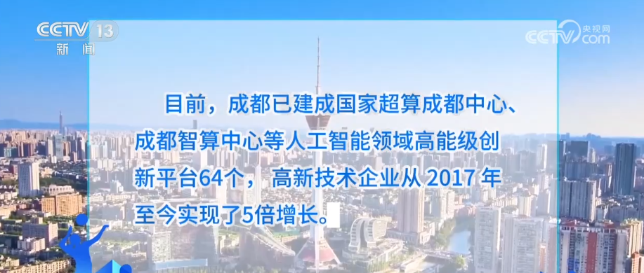 目前,成都已建成国家超算成都中心、成都智算中心等人工智能领域高能级创新平台64个,高新技术企业从2017年至今实现了5倍增长。