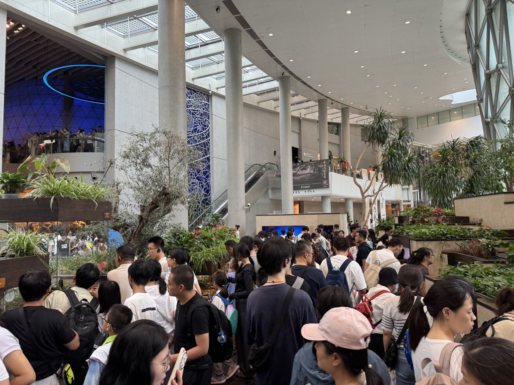 日前,澎湃新闻在上海自然博物馆看到,即便受台风影响,下着暴雨,11:00的上海自然博物馆游客人次已超过3000,馆内人头攒动。