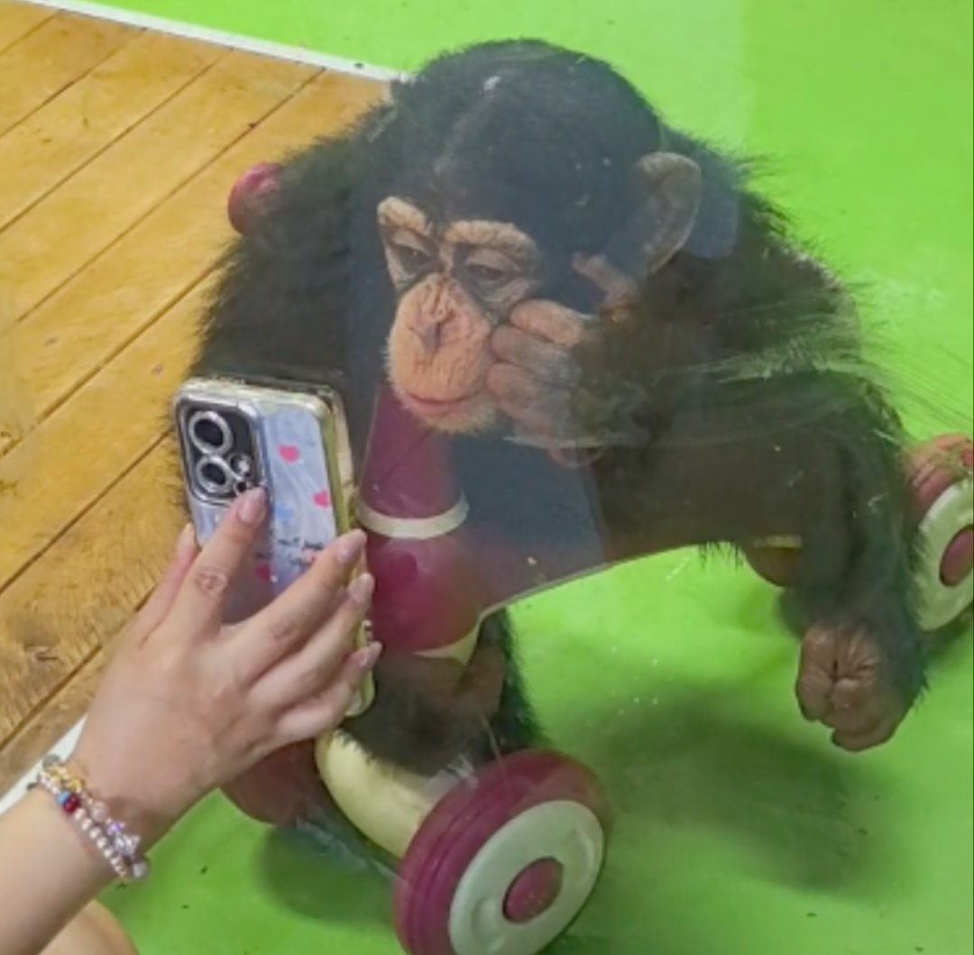 ·上海野生动物园提示“不要给网红猩猩看手机”,园方:伤害视力,猩猩也没办法戴眼镜,会变得焦躁。