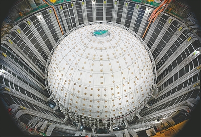 建设中的江门中微子实验中心探测器。新华社记者 金立旺摄