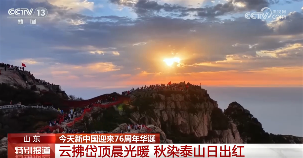山东:云拂岱顶晨光暖 秋染泰山日出红