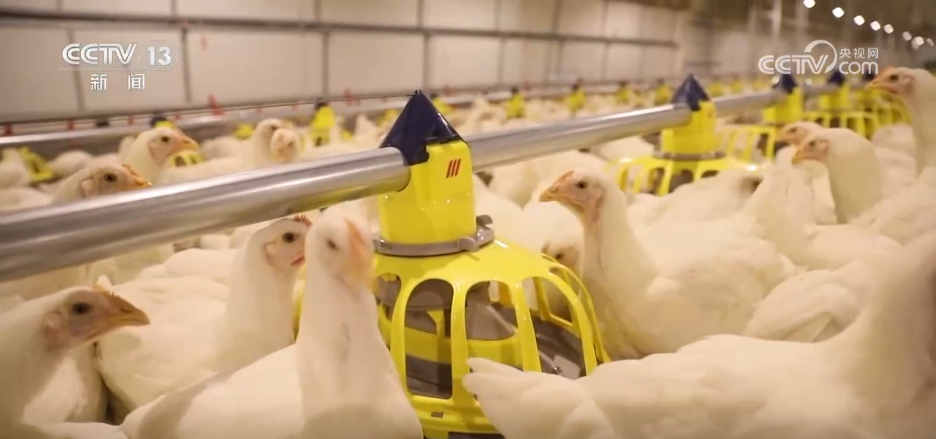 在位于福建南平光泽县的这个白羽肉鸡养殖基地,养殖场内智能喂料系统正实时感应料盘余量,并自动打料传输,自动饮水系统保证鸡随时喝到干净卫生的水,分布四周的传感器自动采集养殖场的温度、湿度和空气质量等指标。